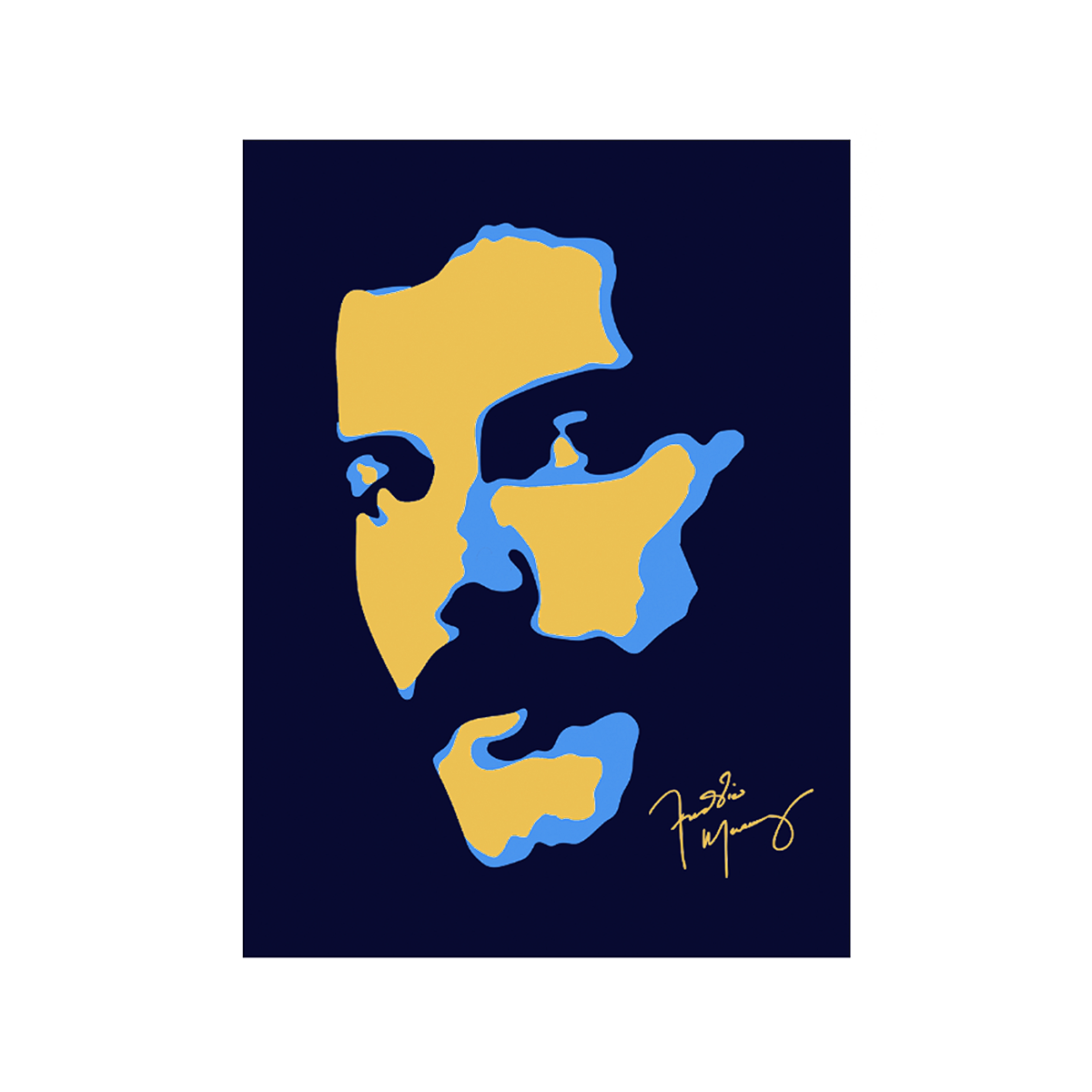 Dark navy poster featuring Freddie Mercury signature artwork.